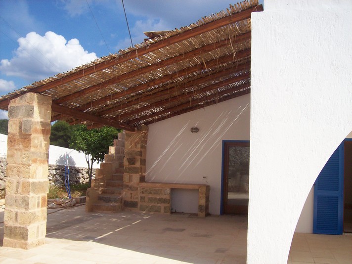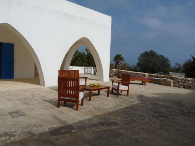 Sulla litoranea Adriatica nel parco Otranto – Santa Maria di leuca in posizione panoramica sorge Villa dell'Arco, immersa in una natura incontaminata tra alberi di ulivo secolari, fichi d'india e macchia mediterranea e distante soli 300 metri dal mare. La costa di questa località si alterna tra tratti di sabbia, scoglio basso e grotte maestose da scoprire e visitare. Santa Maria di leuca è il punto in cui poter decidere di raggiungere da un lato le lunghe spiagge di sabbia e le rinomate Maldive Salentine dall'altro le suggestive località scogliere quali Il Ciolo , Marina di Novaglie, Marina Serra.....La costruzione fu eretta negli anni 80 ancor prima dell' istituzione dell'area che tutela questo tratto per poi essere ristrutturata completamente nel 2006. Il tutto copre un' area di circa 100 mq ed al suo interno troviamo: salone con angolo cottura e camino, due camere da letto e bagno ogni stanza si affaccia sul porticato che permette la vista mare, anche se il punto più favoreggiato è la terrazza dalla quale si ha una bellissima visione su tutto il paesaggio circostante. Nella stessa proprietà è stata ricavata una depandance composta da camera con bagno ed un garage La villa è fornita inoltre di impianto di riscaldamento, climatizzatori, porte in alluminio con doppio vetro, persiane.