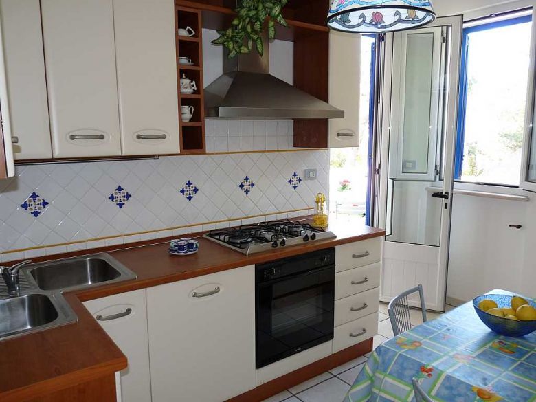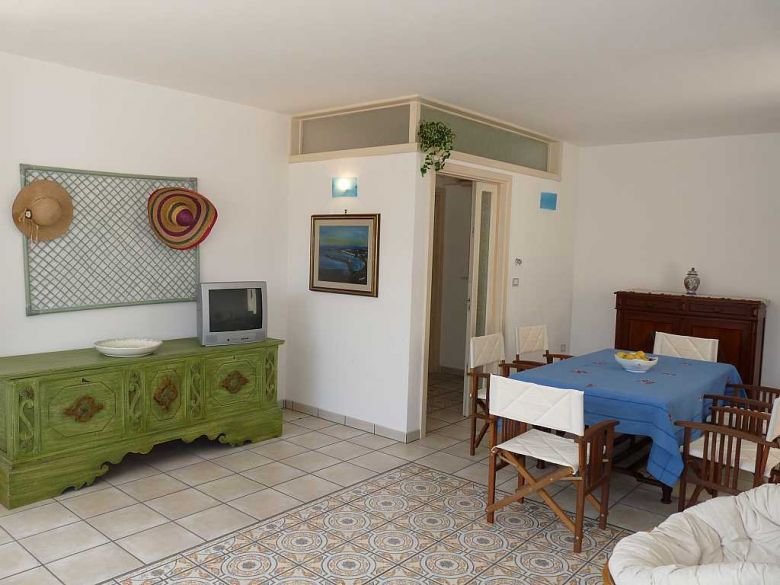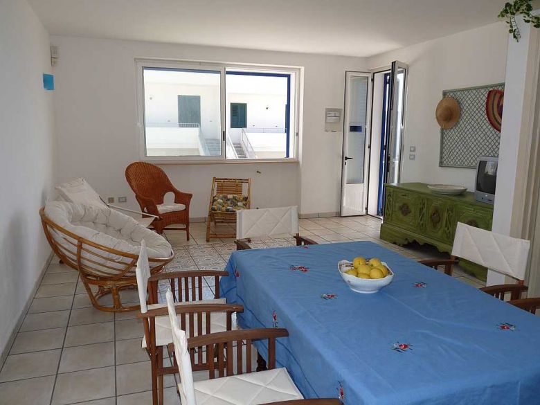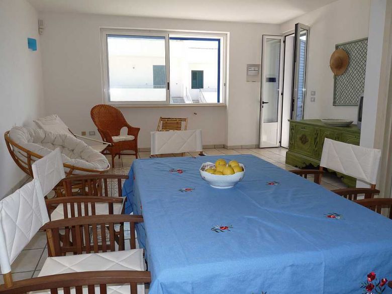 L'appartamento al primo piano composto da; ampio soggiorno, angolo cottura, tre camere da letto di cui una matrimoniale, una doppia e una singola, due bagni, ampio spazio retrostante e antistante permettono di poter pranzare o cenare fuori, lastricato solare di pertinenza dove poter prendere il sole in pieno relax. La casa è inoltre corredata di pentole, stoviglie, tv, doccia esterna, zanzariere, posto auto. Nelle vicinanze sono disponibili, ristoranti sul mare, pescherie, pubs, supermercati e tanto altro ancora.