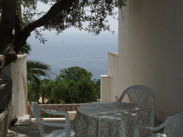 Appartamento situato in Marina di Novaglie sul versante adriatico, a 500 mt dal mare, composto da: una camera da letto con verandina vista mare, sala pranzo con angolo cottura, un bagno e un bel lastricato solare con doccia esterna.