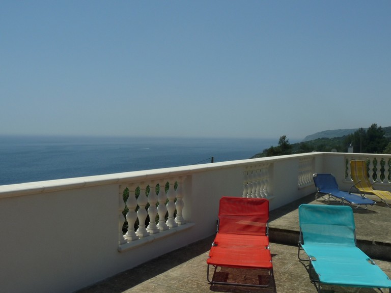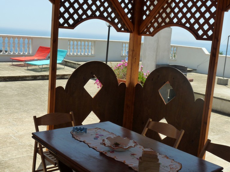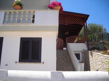Grazioso appartamento in villa situato al primo piano, con ottima vista mare e distante da quest'ultimo solo 400 mt. L'appartamento è composto da; due camere da letto, bagno, porticato in legno con sala pranzo e angolo cottura il tutto ben arredato e curato nei minimi dettagli per offrire il meglio ai suoi ospiti. L'appartamento offre inoltre i seguenti servizi, giardino, posti auto scoperti, angolo giochi all'aperto per i più piccoli con piccola piscina, terrazzo attrezzato con gazebo dove poter pranzare o cenare in tutta tranquillita' ammirando il mare e tutte le sue bellezze che lo circondano, le sedie a sdraio permettono poi di poter prendere in tutta tranquillita' il sole, barbecue, lavatrice in comune, tv con digitale. Disponibile biancheria da bagno e da letto e prima colazione su richiesta.