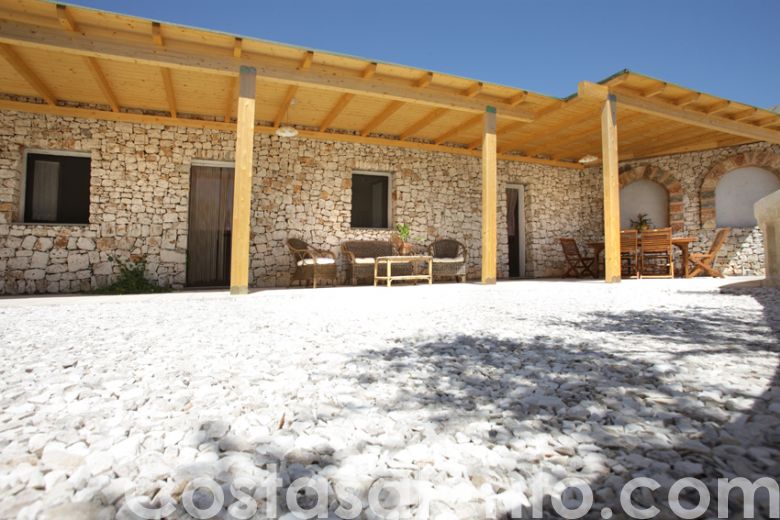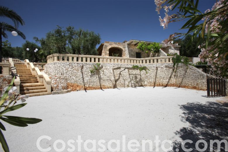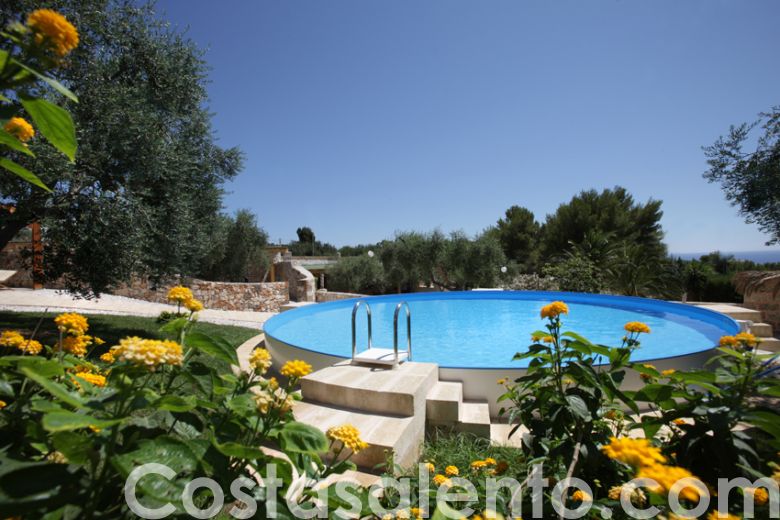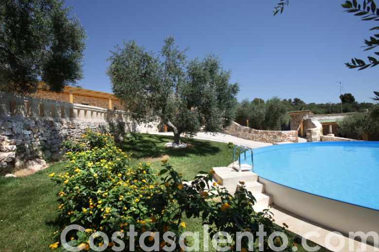 Ciò che maggiormente rapisce l’attenzione del turista è lo spazio esterno, impreziosito da piante ornamentali, palme ed ulivi secolari che portano con sé quell’ aria genuina e quel profumo di iodio che tanto raccontano di questa terra baciata dal sole e accarezzata dalle brezze marine, ad arricchire ulteriormente la vacanza dei propri ospiti , la piscina in comune che consente di fare un tuffo anche sotto il chiarore delle stelle ed un 'illuminazione perimentrale dona una suggestiva atmosfare la sera . Altresì la struttura offre: posto auto , una doccia esterna, vano lavanderia con lavatrice, zanzariere.