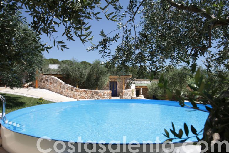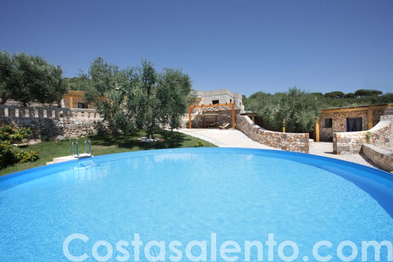 E’ in tale contesto che si staglia a pochi mt. dal cristallino mare di Novaglie, un complesso di tre trulli con piscina in comune immersi in un'oasi di pura tranquillità. L'intero complesso è immerso in 2000 mq di giardino ben curato con piscina in comune e solarium attrezzato per godere delle calde giornate d'estate sotto l'ombra dopo un refrigerante tuffo in piscina accerchiata da un verde prato inglese su cui sdraiarsi per una tintarella. Uno dei tre trulli è il “Riccio” dal caratteristico rivestimento in pietra, così ribattezzato per rendere omaggio a ciò che di meraviglioso e sorprendente ci dona il mare.