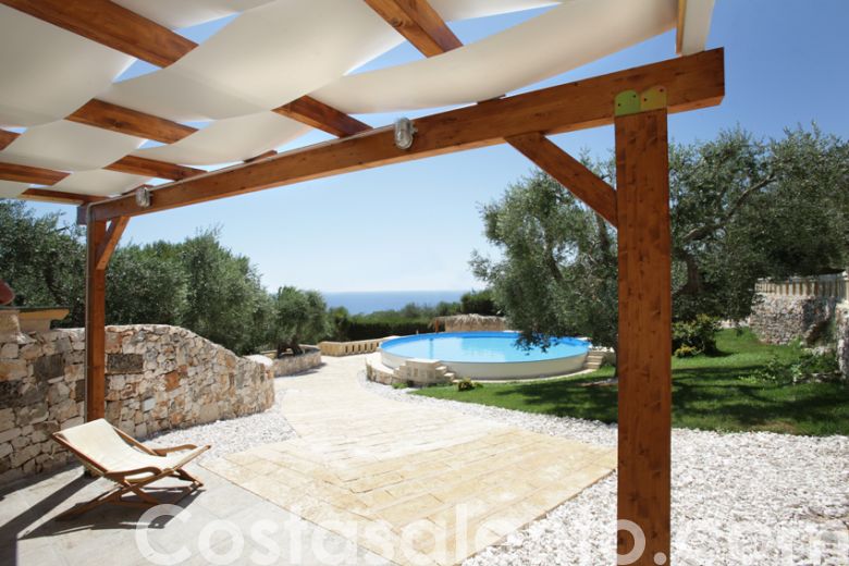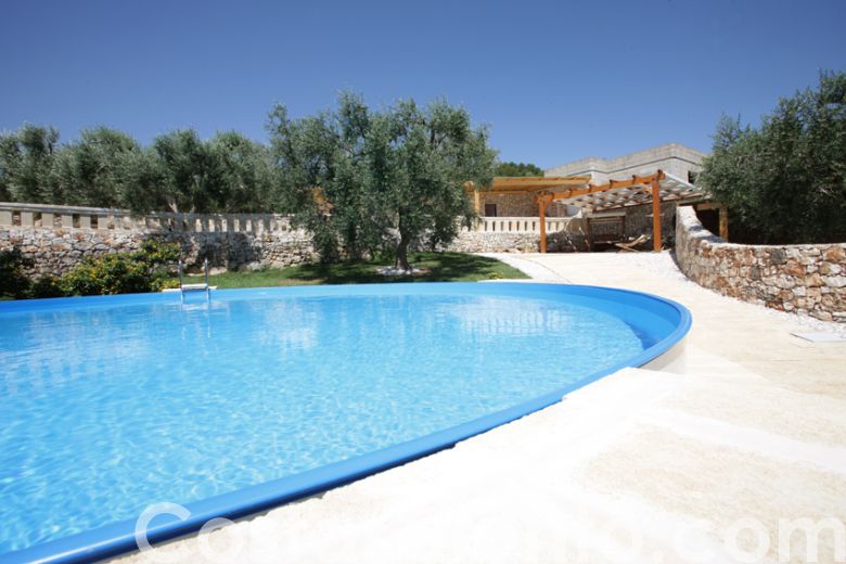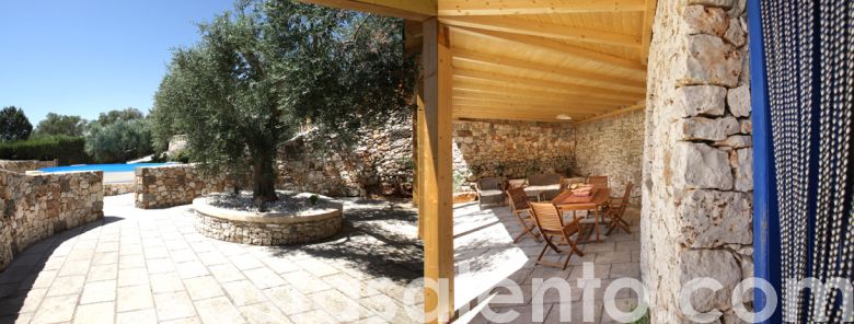 Ciò che maggiormente rapisce l’attenzione del turista è lo spazio esterno, impreziosito da piante ornamentali, palme ed ulivi secolari che portano con sé quell’ aria genuina e quel profumo di iodio che tanto raccontano di questa terra baciata dal sole e accarezzata dalle brezze marine, ad arricchire ulteriormente la vacanza dei propri ospiti , la piscina in comune che consente di fare un tuffo anche sotto il chiarore delle stelle ed un 'illuminazione perimentrale dona una suggestiva atmosfare la sera . Altresì la struttura offre: posto auto , una doccia esterna, vano lavanderia con lavatrice, zanzariere.