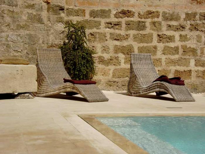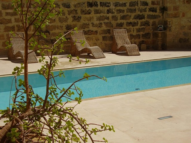 Nella corte centrale troviamo inoltre una piscina (3 x 9 mt) di uso comune con lettini, ombrelloni, sedie tavolini, postazione con tv-lcd e hi-fi stereo.