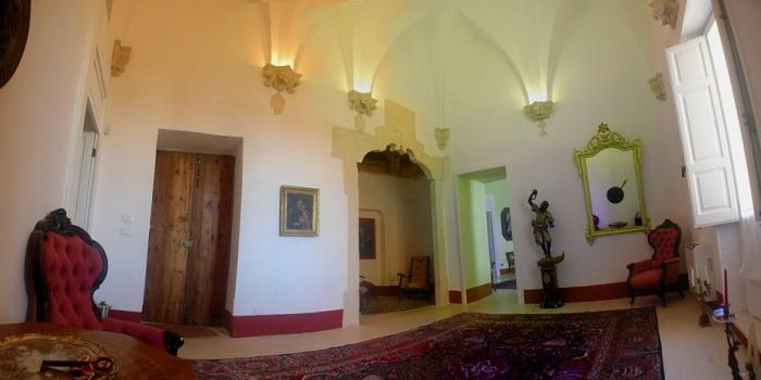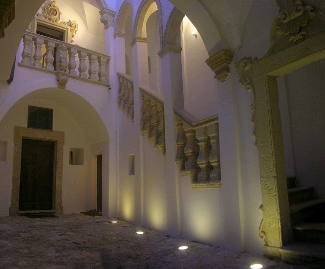 Nel borgo antico di Alessano sorge il signorile Palazzo Romasi: una luminosa ed ariosa dimora in stile barocco che risale al XVI secolo e recentemente restaurata nel rispetto dei suoi particolari architettonici natali. Di pregio i decori interi come l’affresco e gli arredi di alto antiquariato. Gli appartamenti destinati agli ospiti si sviluppano su due livelli; il piano terra è caratterizzato dall’antico viale in pietra che conduce ad un elegante cortile racchiuso da alte mura e da un delizioso atrio che accoglie i visitatori e nel quale sfociano, come affluenti di un fiume, bianche scalinate che conducono al piano superiore.