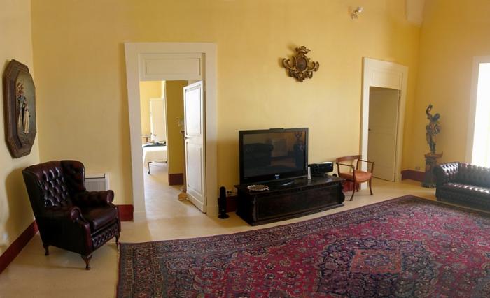 Il palazzo è composto da cinque appartamenti le cui singolari caratteristiche danno il nome a ciascuno di essi: Affresco è uno dei cinque lussosi alloggi più grande del palazzo situato al primo piano. Vanta tre camere da letto matrimoniali tutte con bagno privato con possibilità di aggiunta due letti singoli in due delle camere. Spazioso soggiorno con divani, sala da pranzo con cucina attrezzata ed una panoramica terrazza che si affaccia sulla piscina.