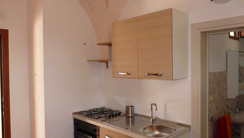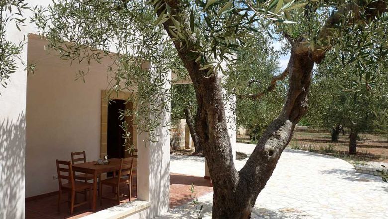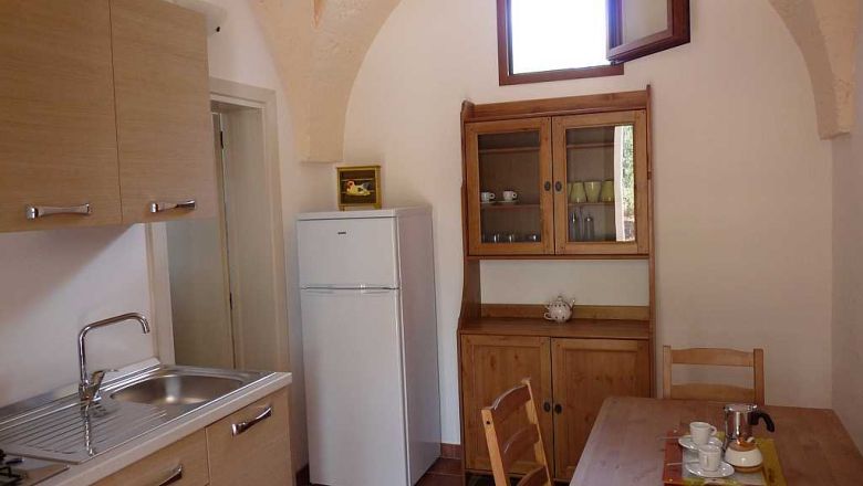 Una graziosa veranda coperta ed attrezzata consente di cenare o pranzare all'aria aperta, su di essa si affacciano due porte dalla prima si accede nella camera da letto matrimoniale e dalla seconda nella sala da pranzo con angolo cottura e bagno. Le volte sono le tipiche a botte e l'arredamento dai colori chiari rilassano l'atmosfera interna. Gli infissi sono dotati di zanzariere inoltre offre servizi tra i quali: barbecue, posto auto, doccia esterna, illuminazione esterna.