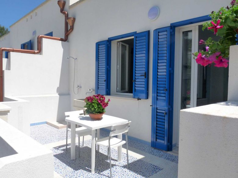 Marina di Novaglie caratterizzata da una scogliera intervallata da suggestive grotte naturali, il cui fondale marino offre agli appassionati di subacquea la possibilità di esplorare paesaggi unici nel loro genere. A 200 mt circa da questo spettacolare mare cristallino proponiamo un bilocale di nuovissima costruzione. L' appartamento, a primo piano, è composto da: camera da letto matrimoniale, sala da pranzo con angolo cottura e divano letto matrimoniale, bagno. Dotata di persiane e zanzariere. Inoltre offre ai propri ospiti una graziosa verandina attrezzata con barbecue per trascorrere frizzanti serate degustando il buon pesce fresco. Tra i servizi anche lavatrice, posto auto, tv, doccia esterna, climatizzatore stoviglie varie. Non sono disponibili biancheria da bagno ne da letto. Nelle vicinanze pescherie, ristoranti, alimentari ed eserizi vari.