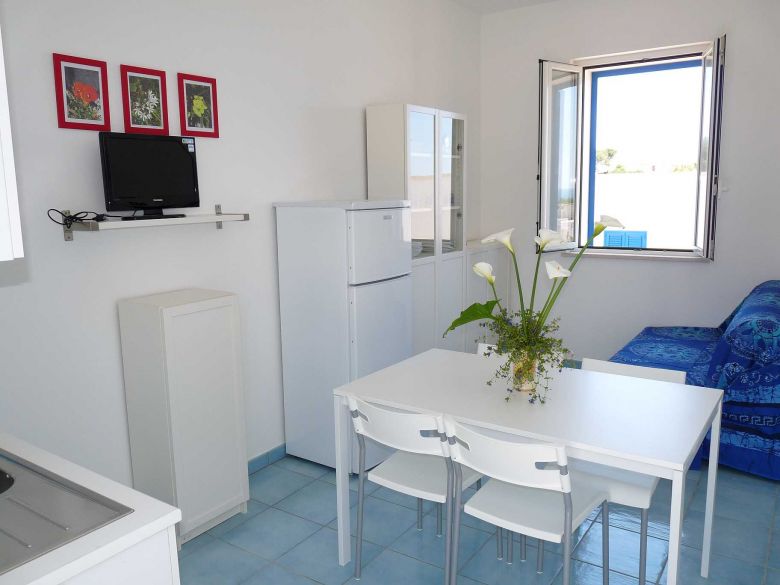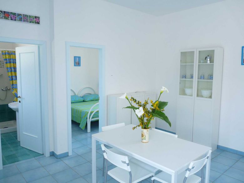 A 200 mt dal mare bilocale a PP composto da: camera,sala da pranzo con angolo cottura e divano letto matrimoniale, bagno
