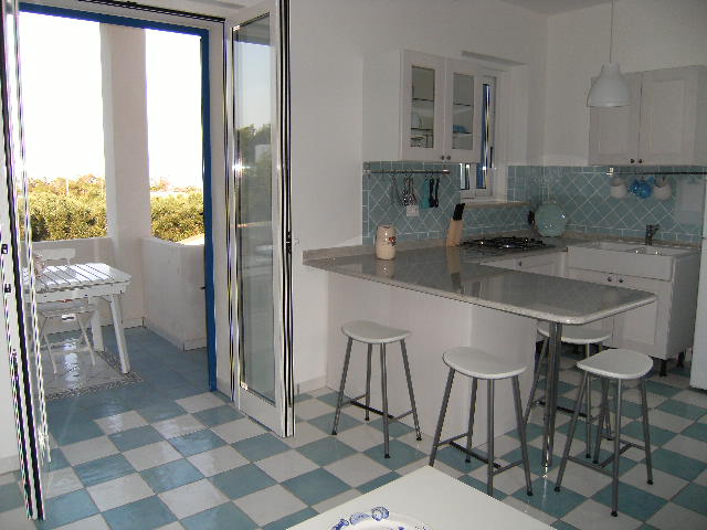 A 250 mt dal mare si propone un appartamento a piano rialzato di nuovissima costruzione. Lo spazio esterno è organizzato in modo che i suoi ospiti possano ammirare il paesaggio cenando fuori o rubando qualche raggio di sole mattutino. Al suo interno è così organizzato: soggiorno con angolo cottura e veranda vista mare, due luminose camere da letto matrimoniali e bagno attrezzato. L'arredamento semplice e scelto con cura. La soluzione è provvista di tutto il necessario per la cucina ma non sono incluse biancheria da bagno e da letto. Il paese più vicino dista circa 2 km.