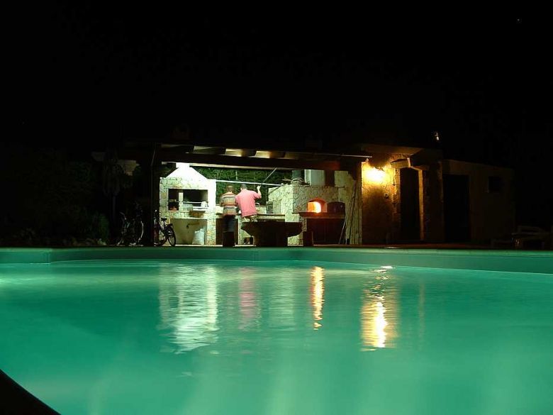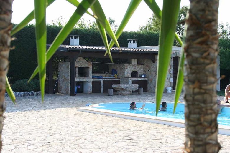Apparyamento in villa con piscina è composto da: due camere da letto, un ampio soggiorno con divanetto e zona tv con impianto satellitare, angolo cottura completo