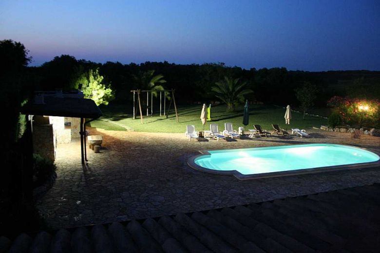 L'appartamento è posizionato su un vasto terreno completamente recintato, immersa nel verde della suggestiva campagna salentina, a circa tre km dalla Costa di Tricase caratterizzata da un mare cristallino ed incontaminato. La struttura è di recentissima realizzazione è il luogo ideale dove le famiglie o piccoli gruppi possono trascorrere le loro vacanze indisturbati. L'appartamento è adiacente ad un secondo. Entrambi, completamente indipendenti, per la loro esposizione e ventilazione risultano essere molto freschi anche nei periodi più soleggiati. Sono arredati in stile rustico e trasmettono il tipico charme delle tenute locali e offrono relax e confort grazie alla piscina con solarium attrezzato. L'appartamento è di circa 50 mq è composto da: due camere da letto, un ampio soggiorno con divanetto e zona tv con impianto satellitare, angolo cottura completo di stoviglie, biancheria da cucina, frigorifero e forno a microonde, bagno. All'esterno la struttura dispone di due verande private, di cui una attrezzata con tavolo, sedie, sdraio e un grazioso barbecue per piacevoli serate sotto il cielo stellato accompagnate da suoni magici della campagna salentina o dai ritmi coinvolgenti della " Pizzica o Taranta". A disposizione degli ospiti inoltre, servizi igenici supplementari all'esterno, docce esterne, una magnifica piscina (5x11 m con scala romana) con salorium attrezzato di ombrelloni, lettini, sdraio, lavatrice in comune, ferro da stiro, biancheria da bagno e da letto con cambio settimanale, phon, Parcheggio interno coperto, zona giochi per i bambini con altalene, scivolo e casetta in legno. E' possibile inoltre accedere all'ampio terrazzo per prendere il sole nella massima riservatezza.